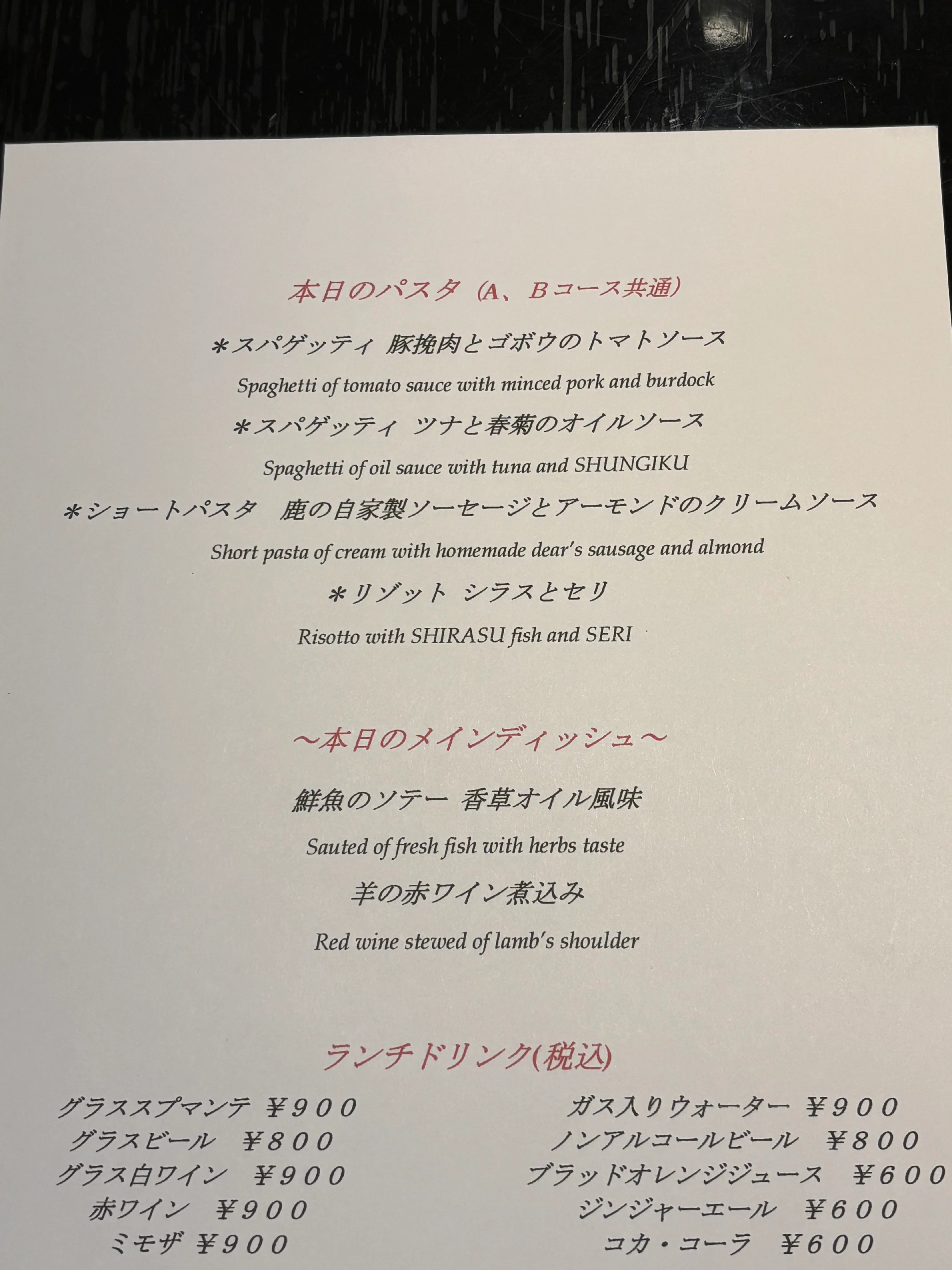 12月1日(12月15日(月)~12月19日(土)ランチパスタメニューです。