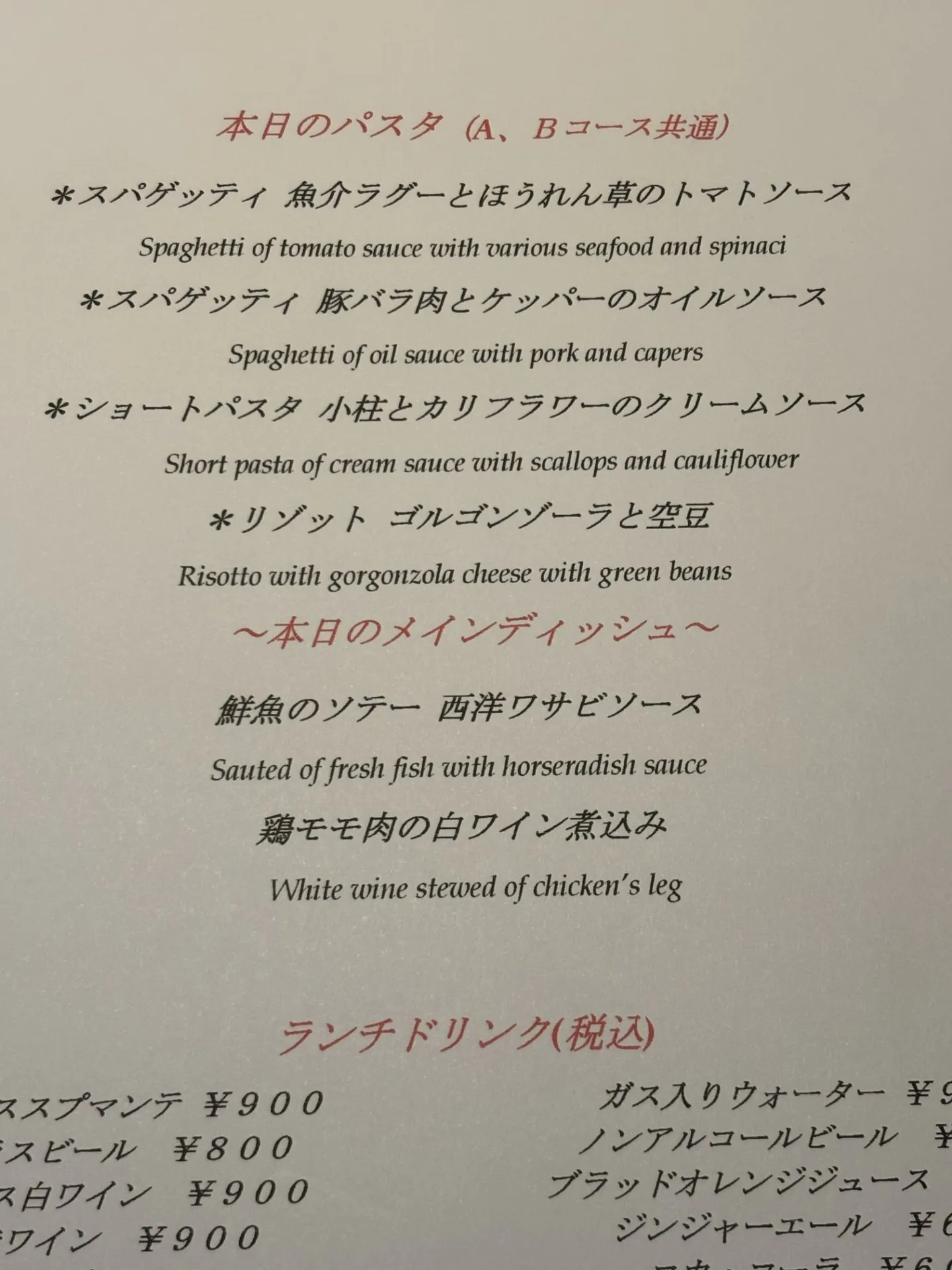 3月23日(月)~3月28日(土)ランチパスタメニューです。